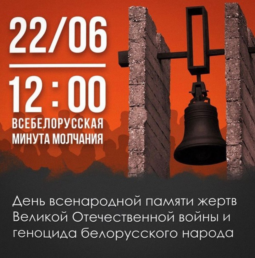22 июня в 12.00 память погибших в годы Великой Отечественной войны Беларусь почтит общенациональной минутой молчания.