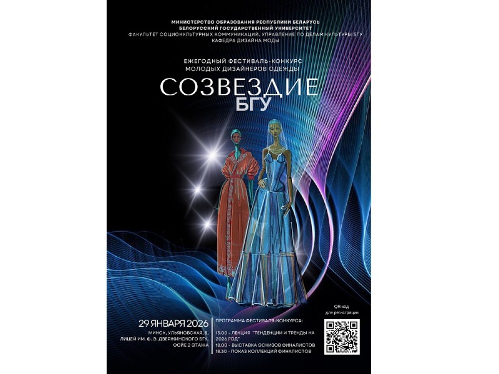 Около 80 студентов из четырех стран презентуют коллекции дизайнерской одежды в БГУ. Модный показ станет ключевым событием финала фестиваля-конкурса молодых дизайнеров «Созвездие», который пройдет 29 января в вузе (ул. Ульяновская, 8). Начало в 18.30.