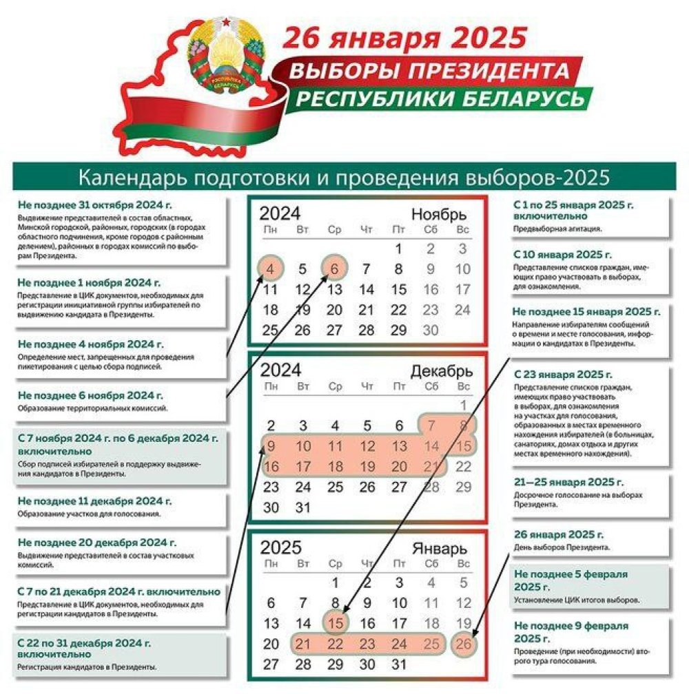 Календарный план организационных мероприятий по подготовке и проведению выборов Президента Республики Беларусь