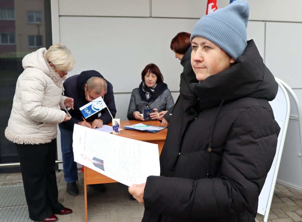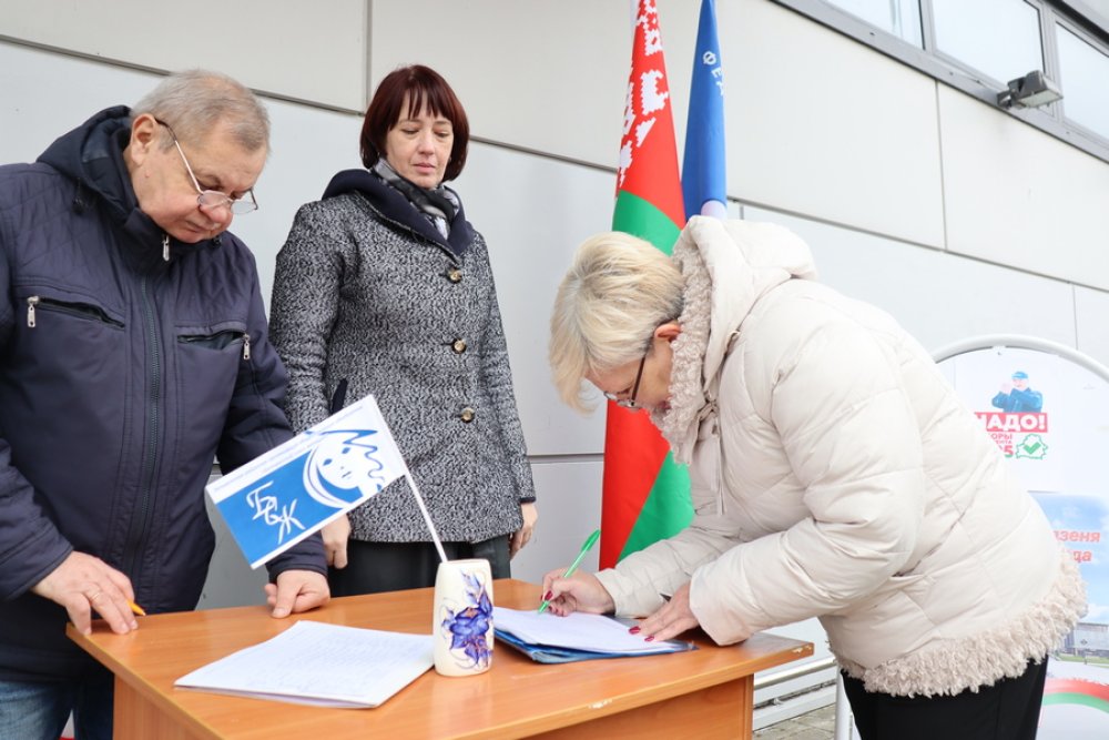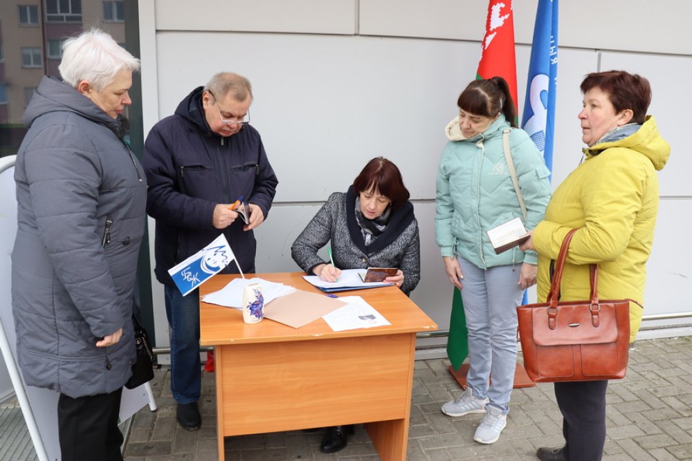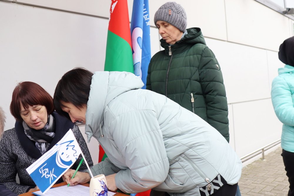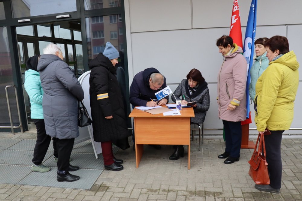 Сбор подписей в районе идет активно.  Сегодня возле магазина «Евроопт» в обеденный перерыв свой пикет организовали представители Федерации профсоюзов, Коммунистической партии Беларуси и общественного объединения «Белорусский союз женщин».