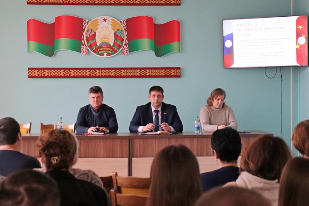 Во время мероприятия его участники остановились на этапах пути, которые прошло наше независимое государство. Эффективная работа экономики, модернизация сельского хозяйства и промышленности, обеспечение продовольственной безопасности, становление науки, доступность образования и медицины, ядерная энергетика, освоение космоса – эти и многие другие темы были в центре внимания. К слову, представитель власти разъяснил присутствующим векторы развития страны на ближайшую пятилетку и рассказал, к чему стремится суверенная Беларусь.