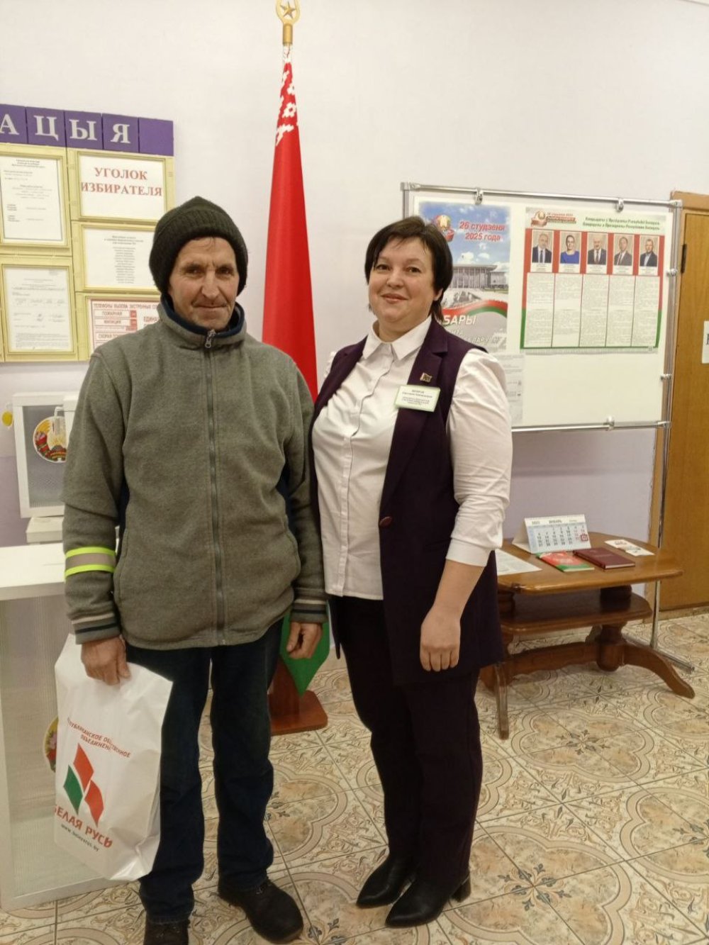 Первым проголосовавшим вручены памятные сувениры от районной организации РОО «Белая Русь» .