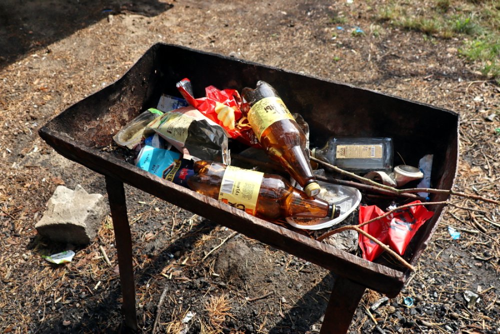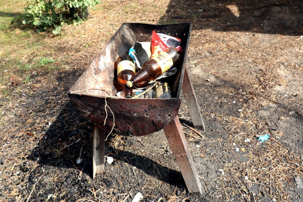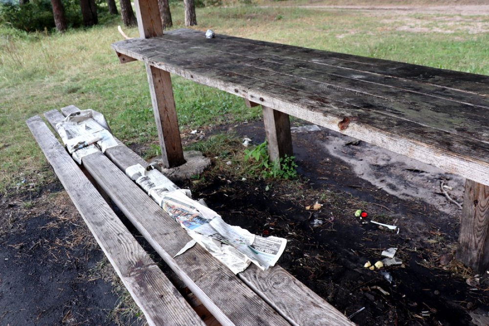 О том, что данное место отдыха популярно у зельвенцев, свидетельствовали оставленные после пикников следы – размокшие от дождя и прилипшие к скамейкам газеты, мангалы, полные бутылок из-под пива и упаковок от чипсов. Под столами и скамейками валяются окурки и пробки, возле кострищ – кучи мусора. В голове не укладывается, как можно все это оставить после себя, если буквально в паре-тройке метров стоит мусорный контейнер. Даже не верится, что среди наших земляков есть такие некультурные люди. Хотя, некультурные – мягко сказано.