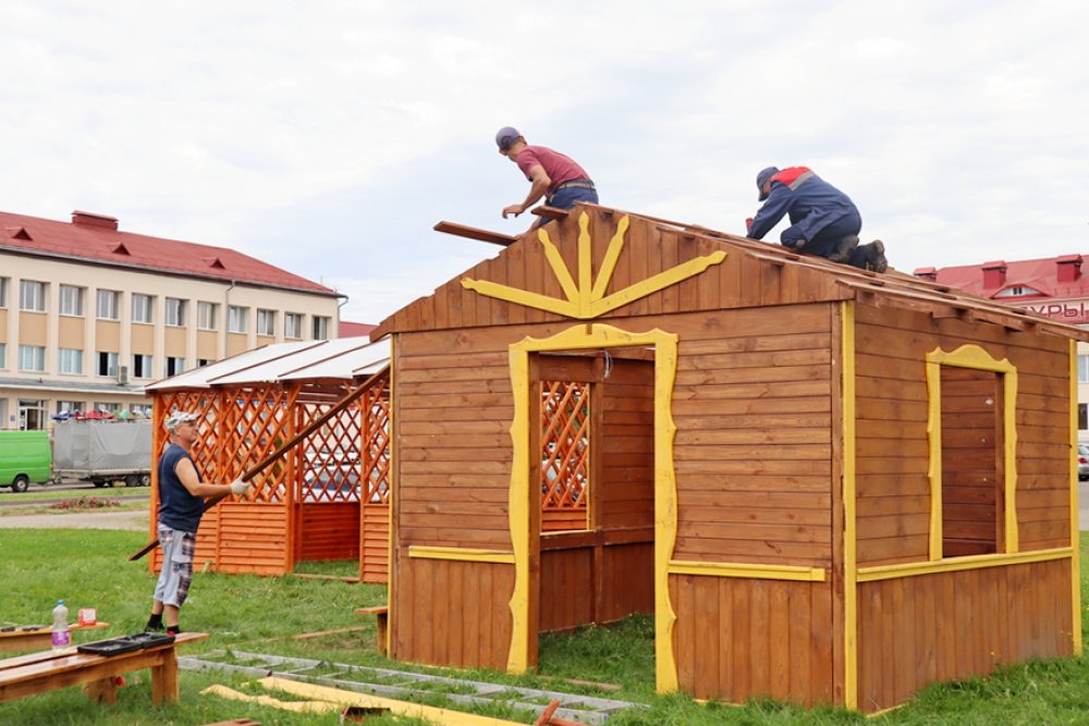На протяжении всего дня свои работы будут представлять ремесленники – для них уже устанавливают палатки. А по улице Победы достраивают небольшие домики. Они будут в основе импровизированных подворий от каждого хозяйства.