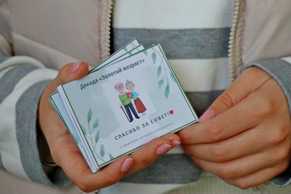 Было принято решение выйти на улицы посёлка и пообщаться с пожилыми людьми. Но задумка весьма интересная: молодые люди обменивали сладости на совет молодому поколению и в подарок также преподносили открыточки.