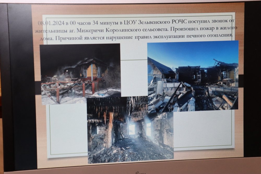 Представитель пожарного ведомства напомнил сельчанам основные правила безопасности при эксплуатации печи, нарушение которых приводит к чрезвычайным ситуациям. В качестве примера привел трагедию, которая в этом году произошла в агрогородке Мижеричи. Причиной огненного ЧП стала трещина в дымоходе.