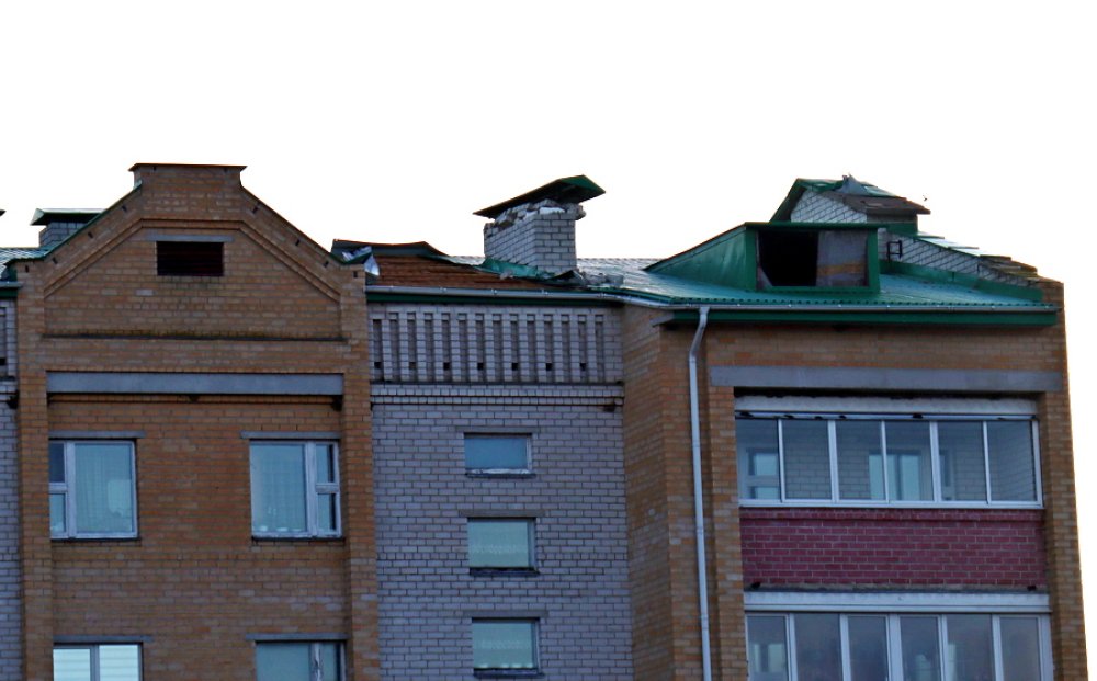 К ликвидации последствий урагана приступили и работники жилищно-коммунального хозяйства. Так, в Зельве в многоэтажном доме по ул.Гагарина,4 повреждена кровля: сильным ветром сорвало фрагмент металлопрофильного покрытия площадью 25 квадратных метров.