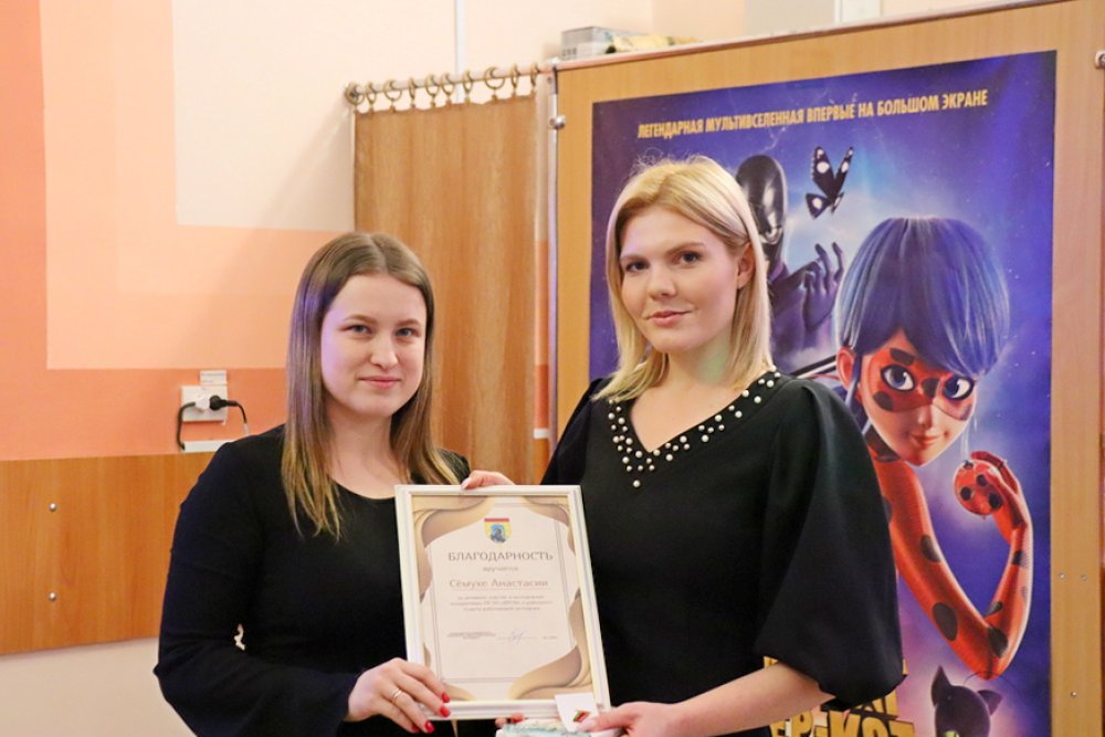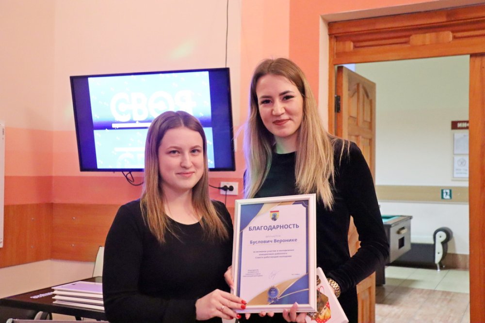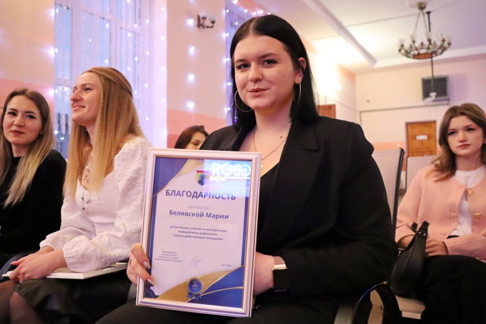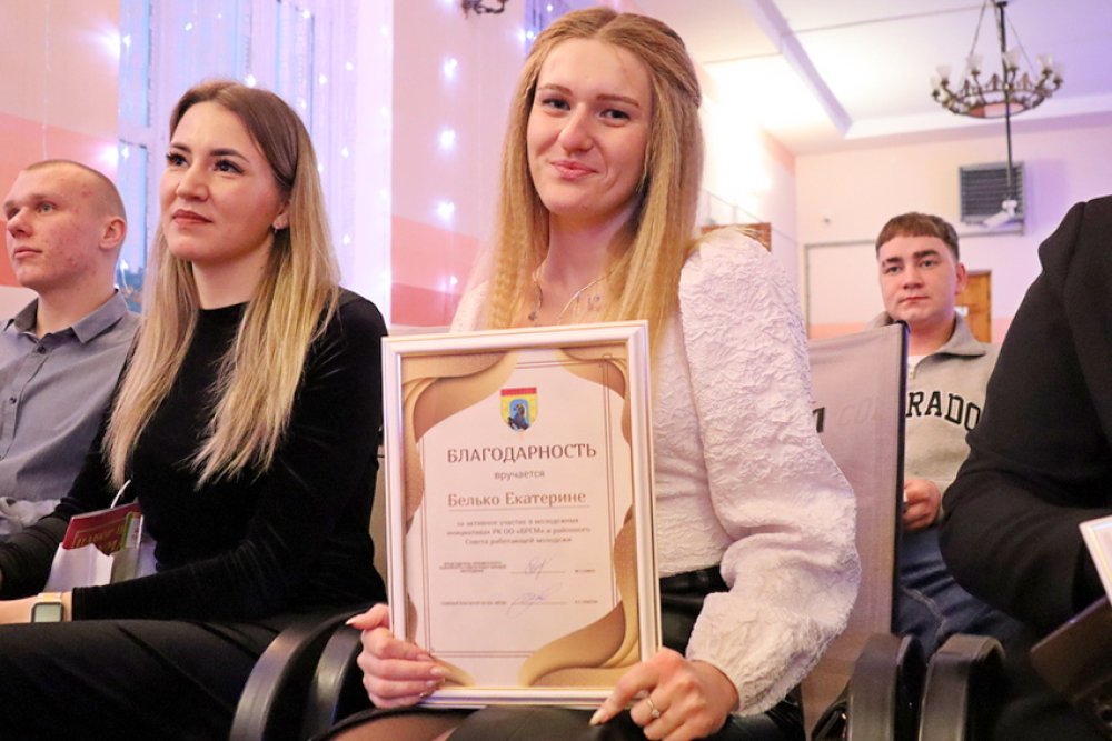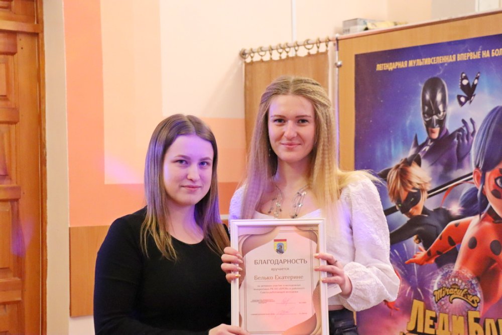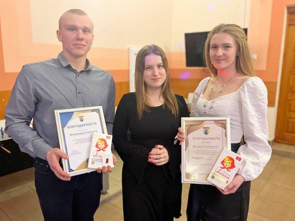 После председатель районного совета работающей молодежи вручила заслуженные награды. За активное участие в молодёжных мероприятиях были награждены Мария Белявская, Екатерина Белько, Анастасия Сёмуха, Александр Столпец, Кирилл Михалюк, Вероника Буслович и Мария Талеркова.