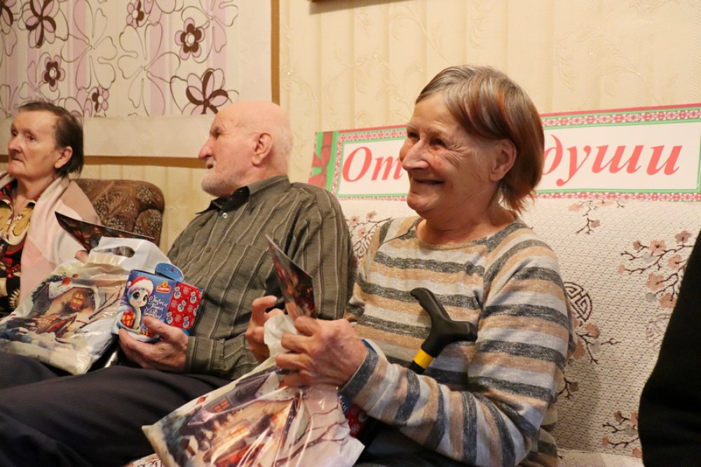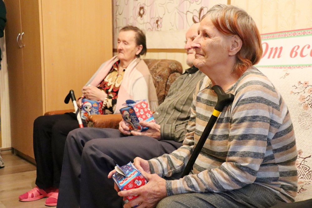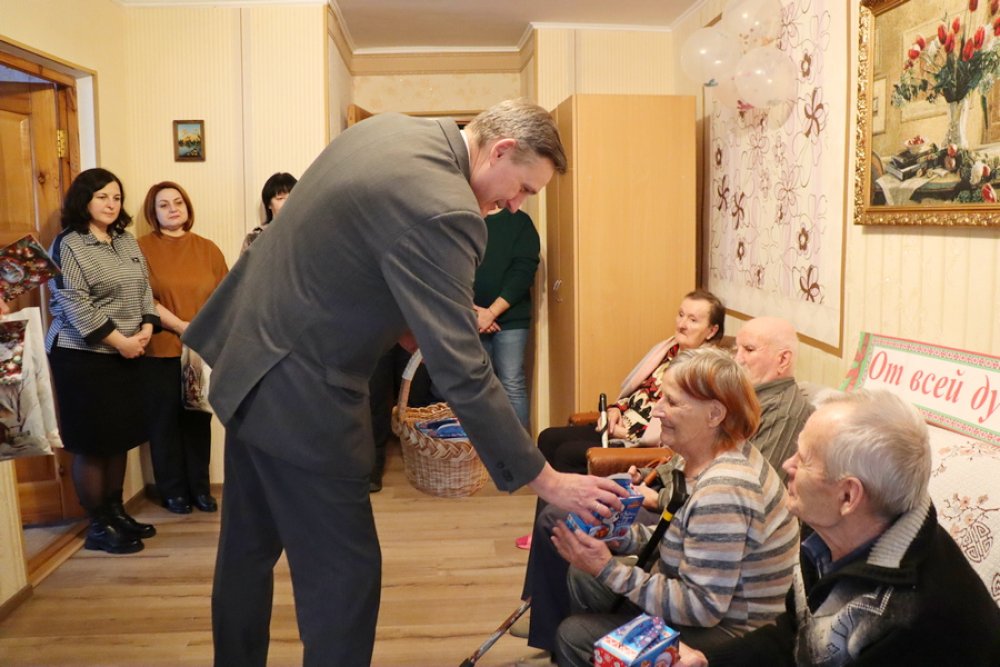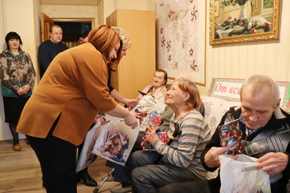 – Приятно приехать в гости и видеть всегда искренние улыбки. Вы прожили долгую жизнь и теперь наша обязанность заботиться о вас, чтобы вы ни в чем не нуждались. Сегодня много поводов для радости. Помимо новогодних и рождественских праздников, вы отмечаете важную дату для вашего дома – десятилетний юбилей. Мы желаем, чтобы жизнь была комфортной, а наши подарки подняли настроение и подарили ощущение праздника, – поделился заместитель председателя райисполкома Сергей Лойко.