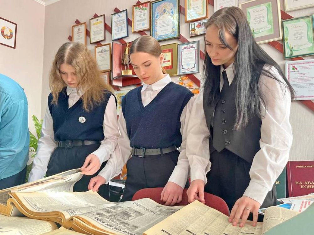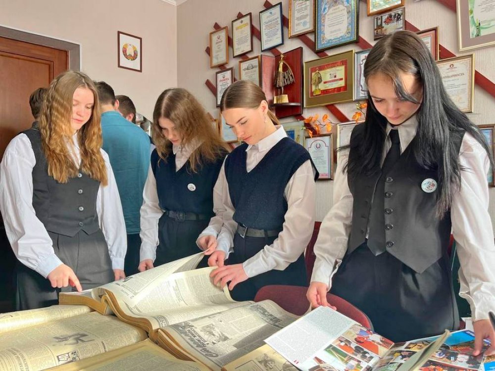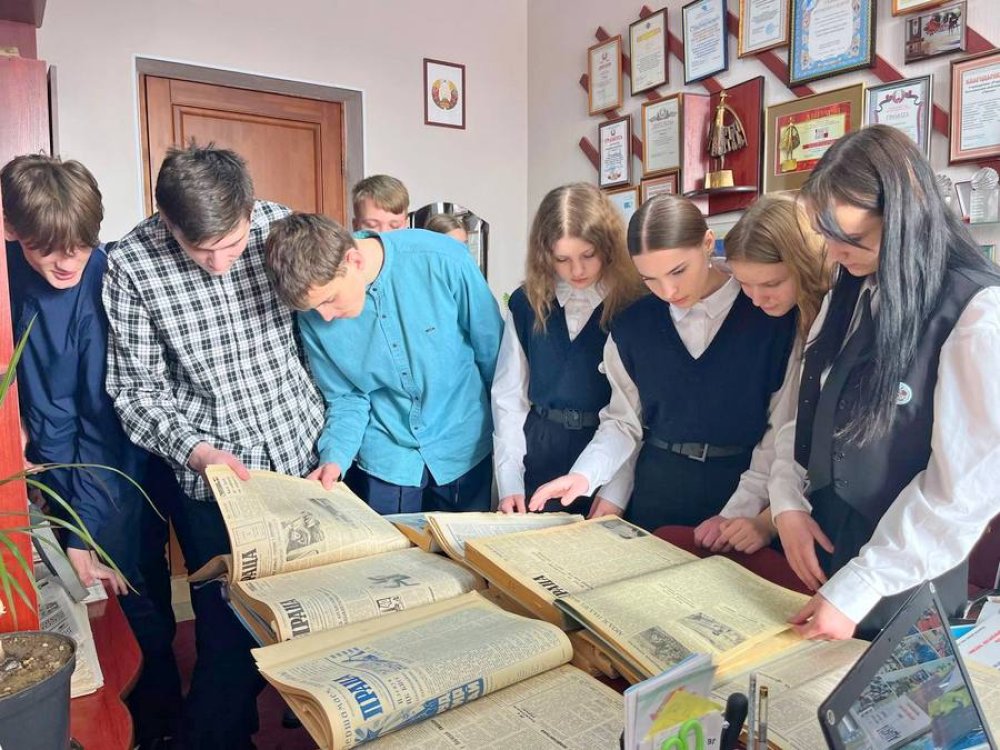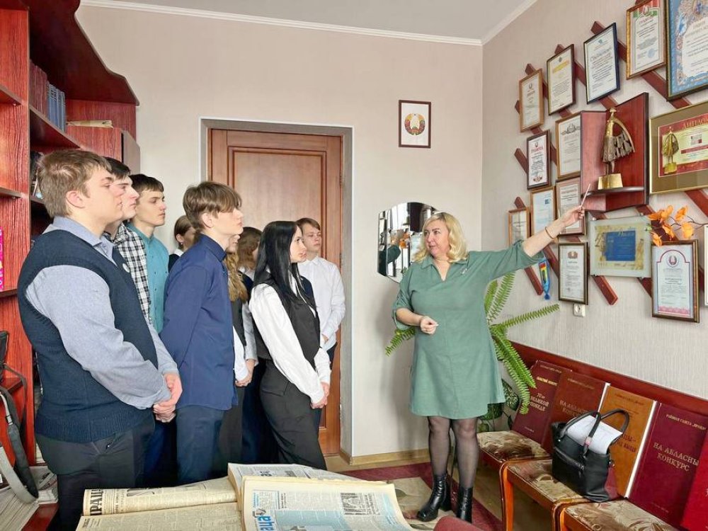 Эксклюзивная первая полоса газеты на память! В редакции «Працы» прошла экскурсия для учащихся Деречинской средней школы