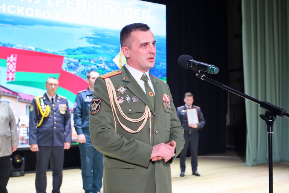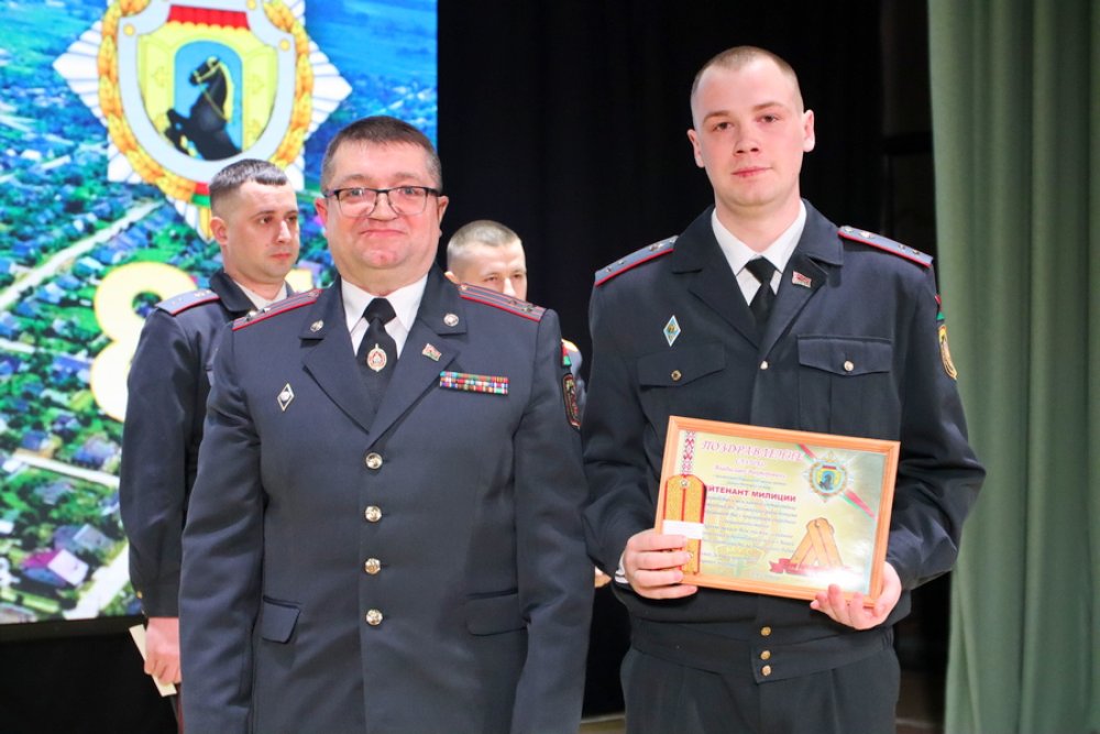 Заместитель начальника милиции общественной безопасности УВД Гродненского облисполкома Виталий Стасюкевич зачитал приветственный адрес от начальника УВД Гродненского облисполкома Дмитрия Резенкова.