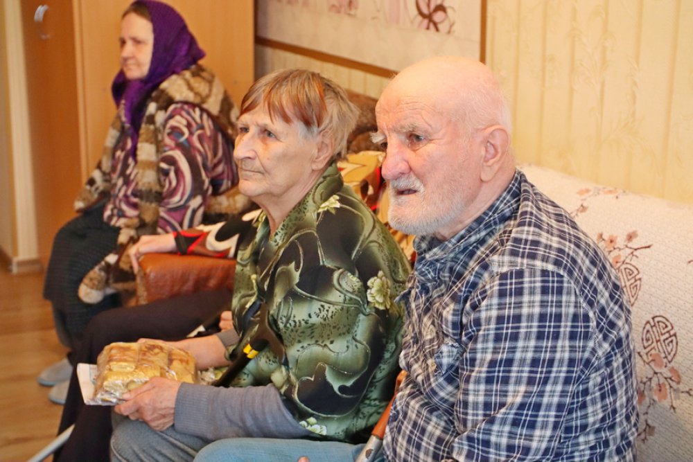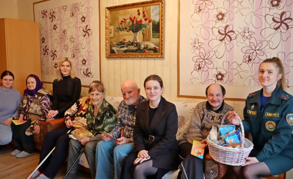 Молодежный актив района в лице Маргариты Севко, Марии Талерковой, Анастасии Сёмухи, Екатерины Белько и Марии Белявской поздравил пожилых людей. Постояльцы встретили девушек радушно и с искренними улыбками.