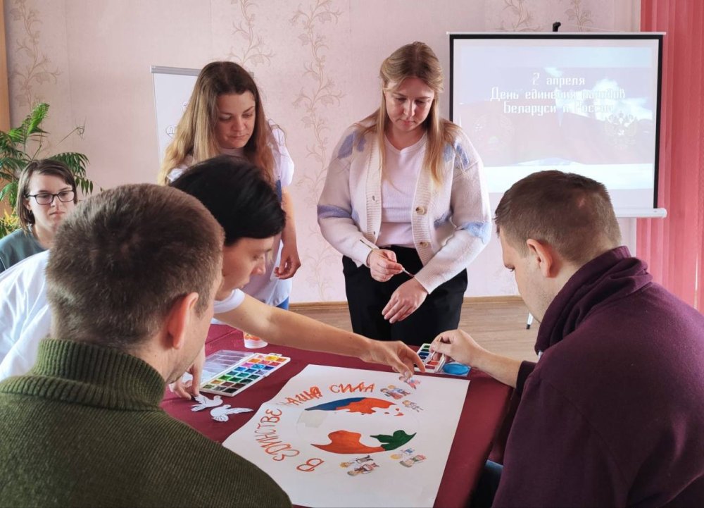 В завершение программы посетители отделения в рамках любительского объединения «Открытые сердца» оформили плакат «Две сестры Беларусь и Россия» как символ уважения братских народов.