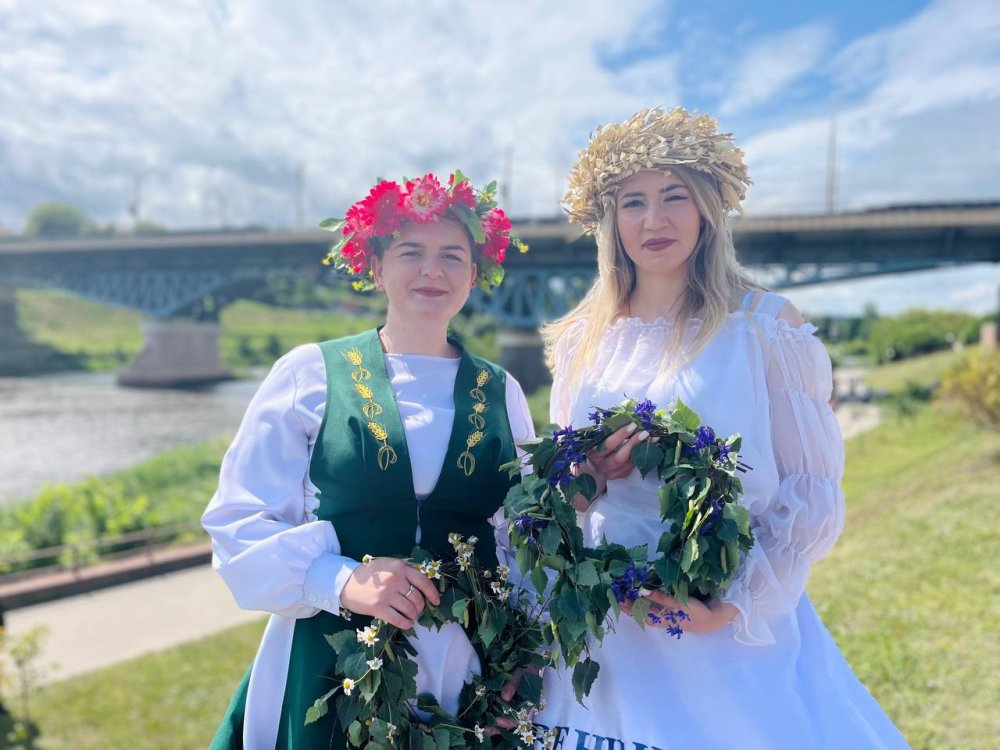 Продемонстрировать венки от Зельвенщины выпала возможность Веронике Буслович и Марии Белявской.