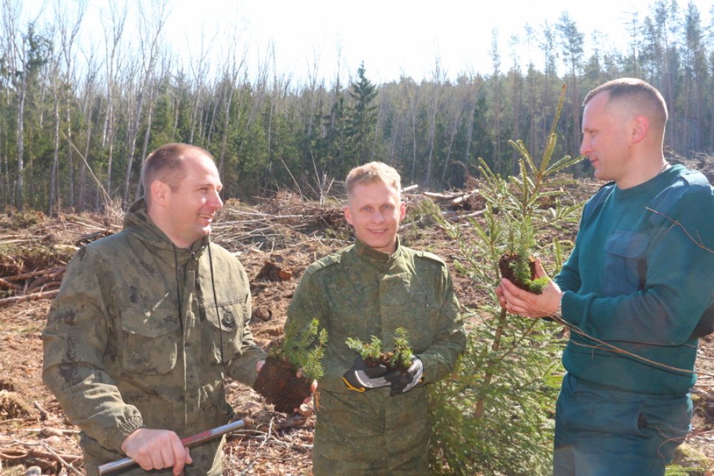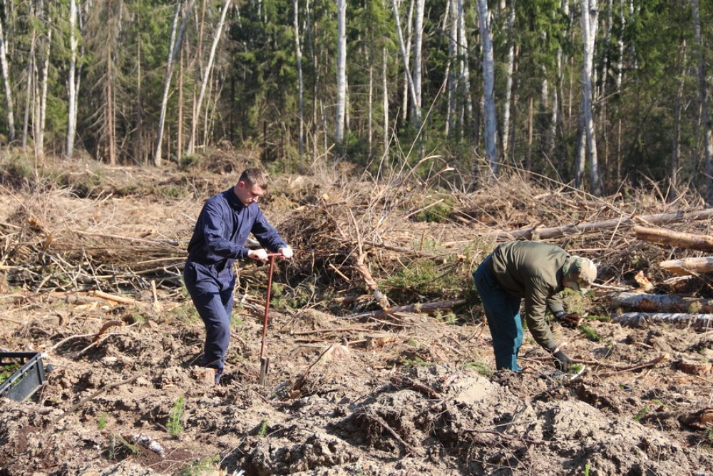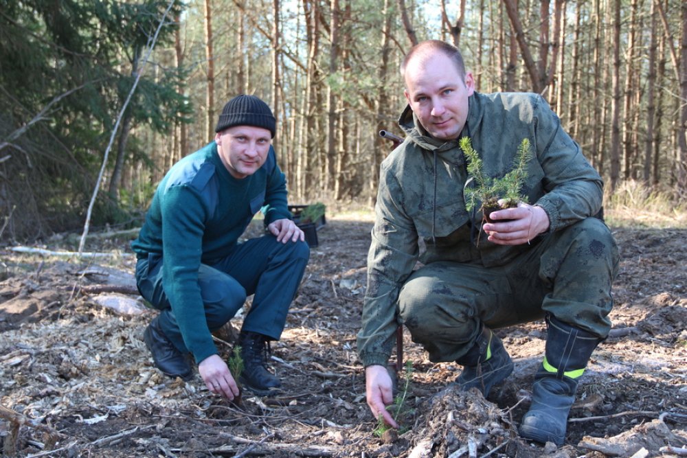 Как рассказал мастер леса Александр Шестак о ходе проведения посадочных работ, в этом сезоне планируется посадить более 40 гектаров леса. В основном это ели, сосна, береза, ольха и дуб. «Рассада» молоденьких дуба и ели из лесного питомника поступает с закрытой корневой системой. На сегодняшний день собственными силами работников лесничества и добровольцами засажено свыше 20 гектаров. Взаимодействие с волонтерами поспособствует скорости возобновления леса.