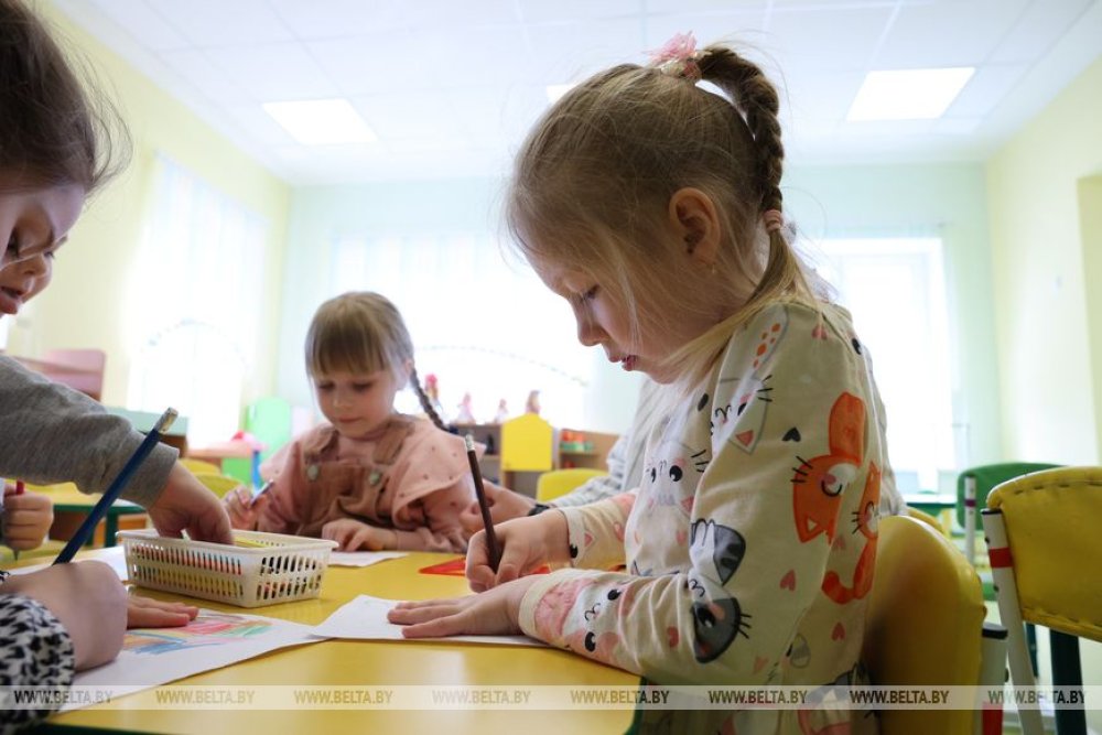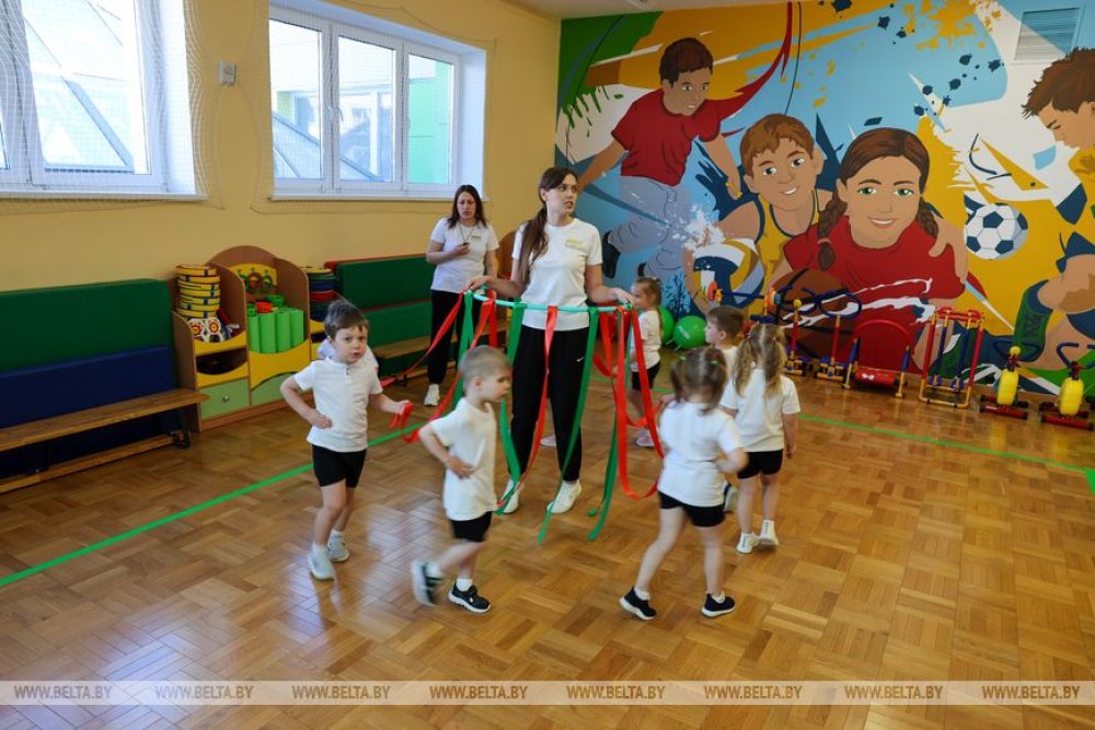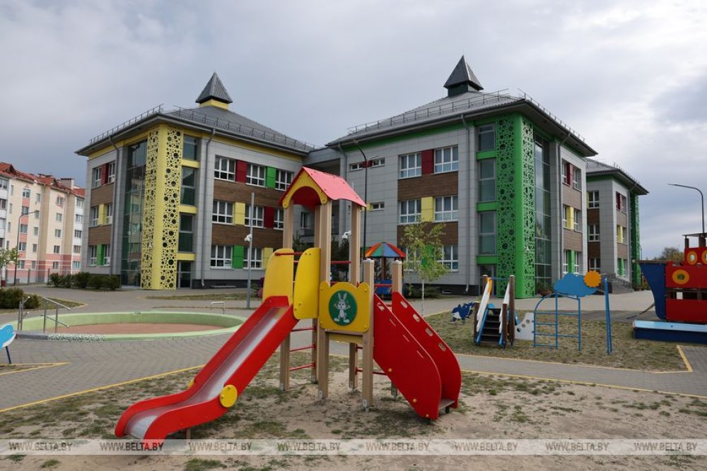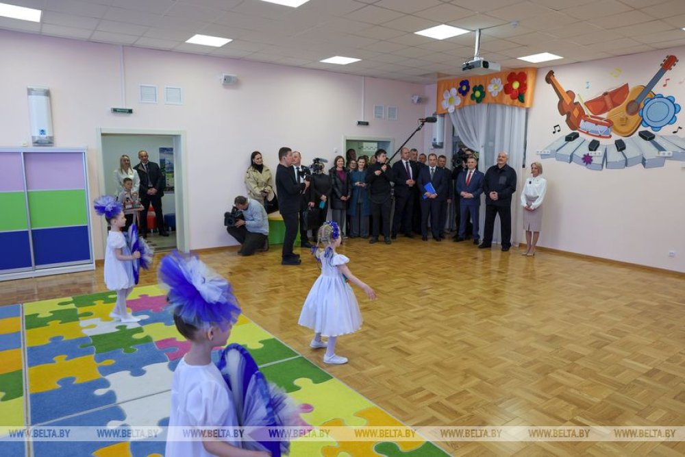 Следующая точка президентского маршрута - дошкольное учреждение образования "Ясли-сад №2 управления социального развития и жилищно-коммунального хозяйства ОАО "Беларуськалий". Он работает в Петрикове с 2021 года.