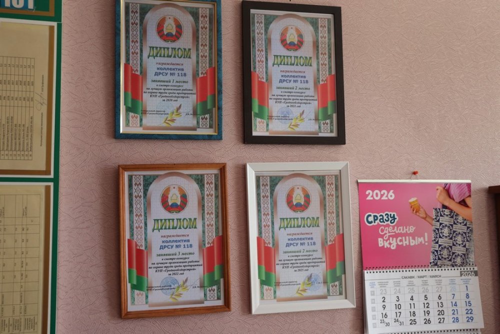 Следующим этапом стало посещение кабинета охраны труда. Инженер по охране труда ДРСУ-118 Евгений Молчун продемонстрировал документацию, стенды и наглядные материалы, используемые для обучения и инструктажа работников.