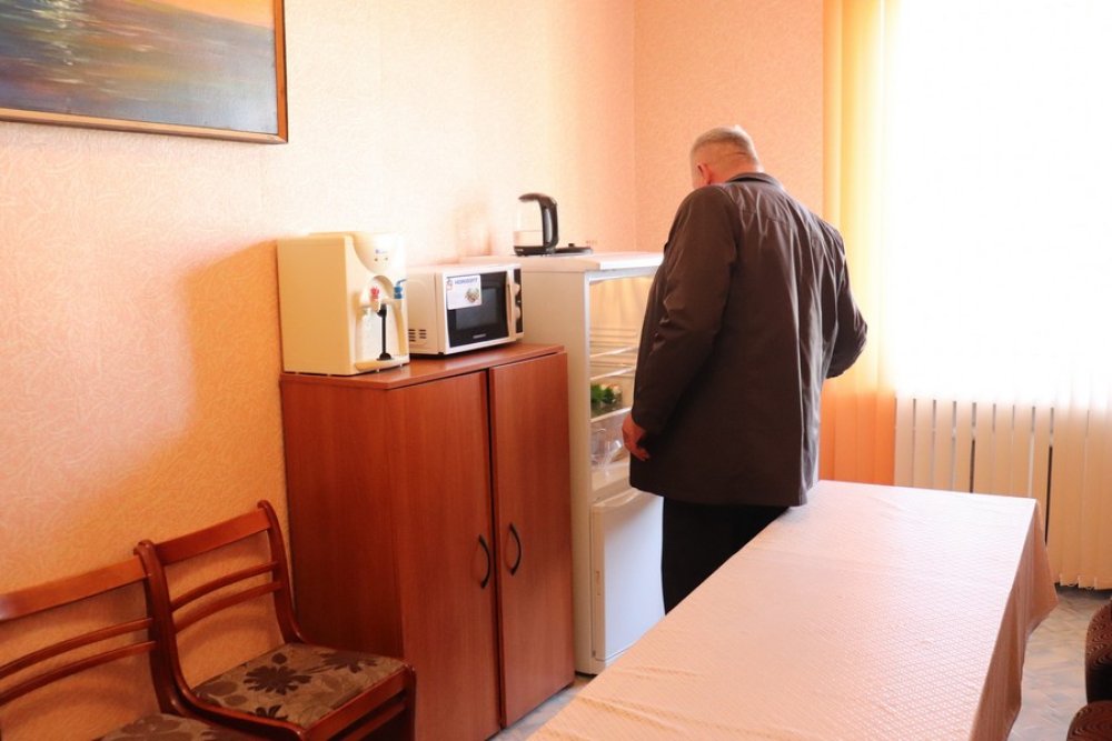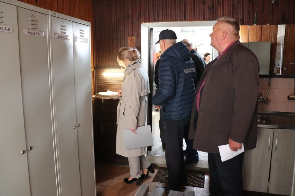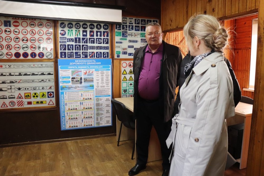 Далее присутствующим предложили ознакомиться с производственной базой предприятия. В начале участников детально познакомили с организацией приборного контроля – проведения освидетельствования на предмет нахождения работников в состоянии алкогольного, наркотического или токсического опьянения. Высокую оценку получили санитарно-бытовые условия: душевые, раздевалки и комната приема пищи. Затем коллеги посетили ремонтную мастерскую и кабинет охраны труда, где изучили документацию и наглядные материалы для инструктажа.
