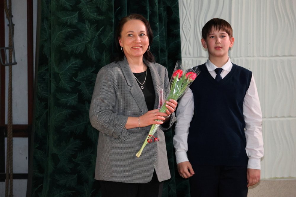 Неожиданным и очень приятным стал сюрприз от районной организации ОО «Белорусский союз женщин» – каждая зельвенчанка, которая пришла на концерт, получила от гимназистов поздравительную открытку, а Лариса Юшкевич – букет тюльпанов.