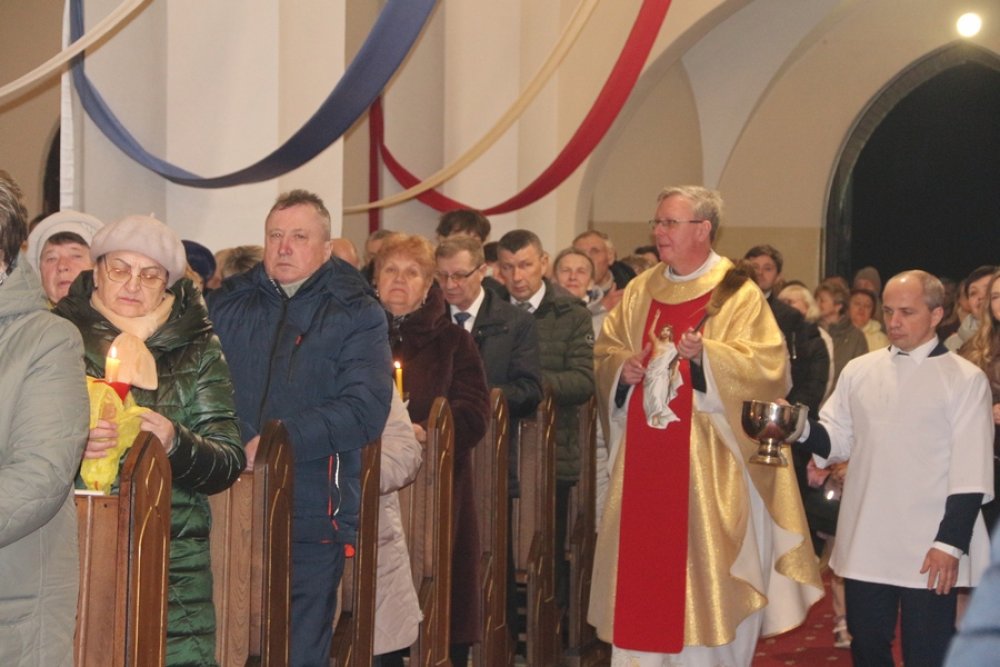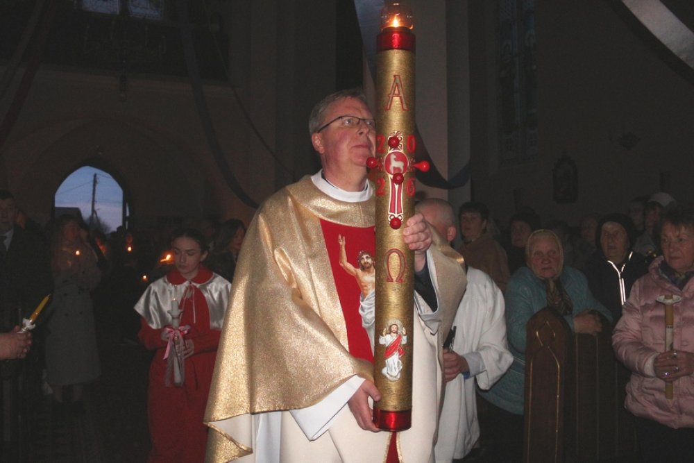 Вігілія Пасхі завяршылася цэлебрацыяй Найсвяцейшага Сакраманту і гімнам пашаны Богу. Хрысціяне па традыцыі Крыжовым шляхам прайшлі вакол касцёла, а затым віншавалі адзін аднаго шчыра і сардэчна.