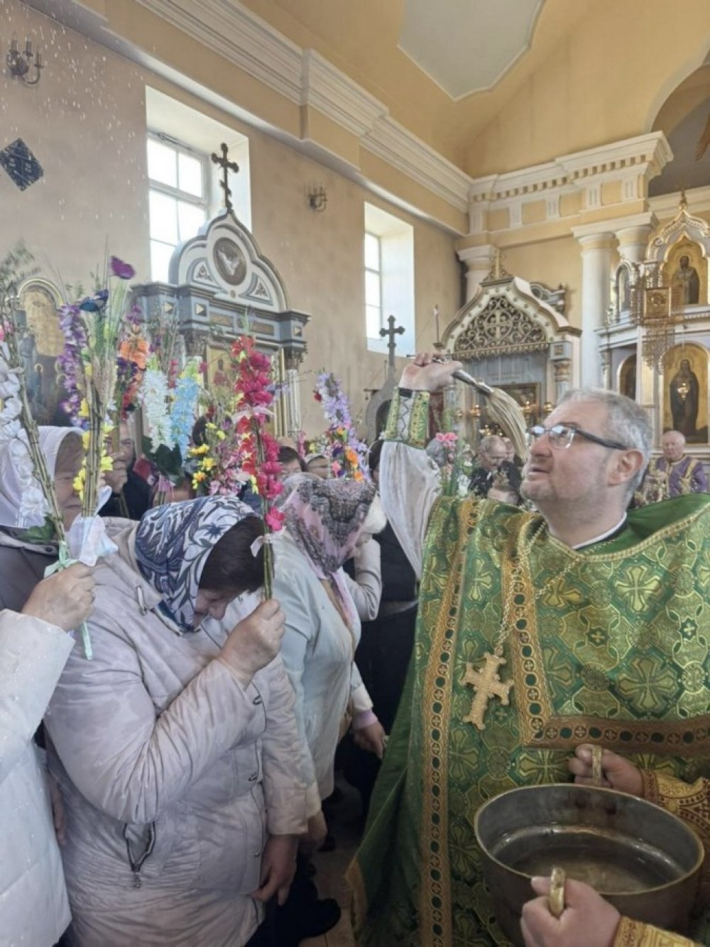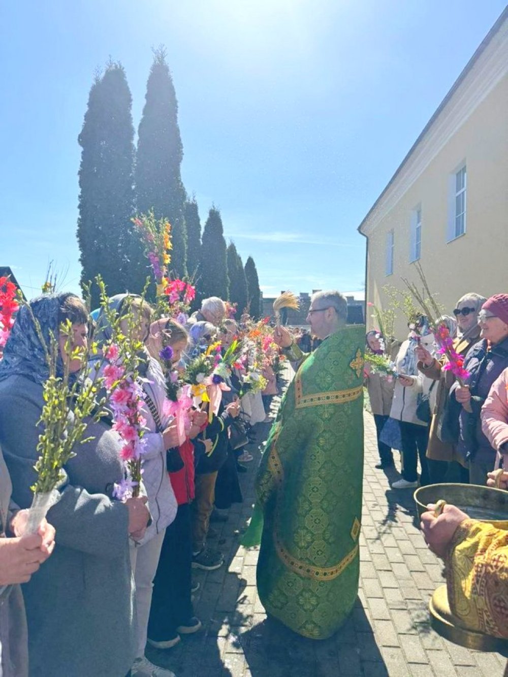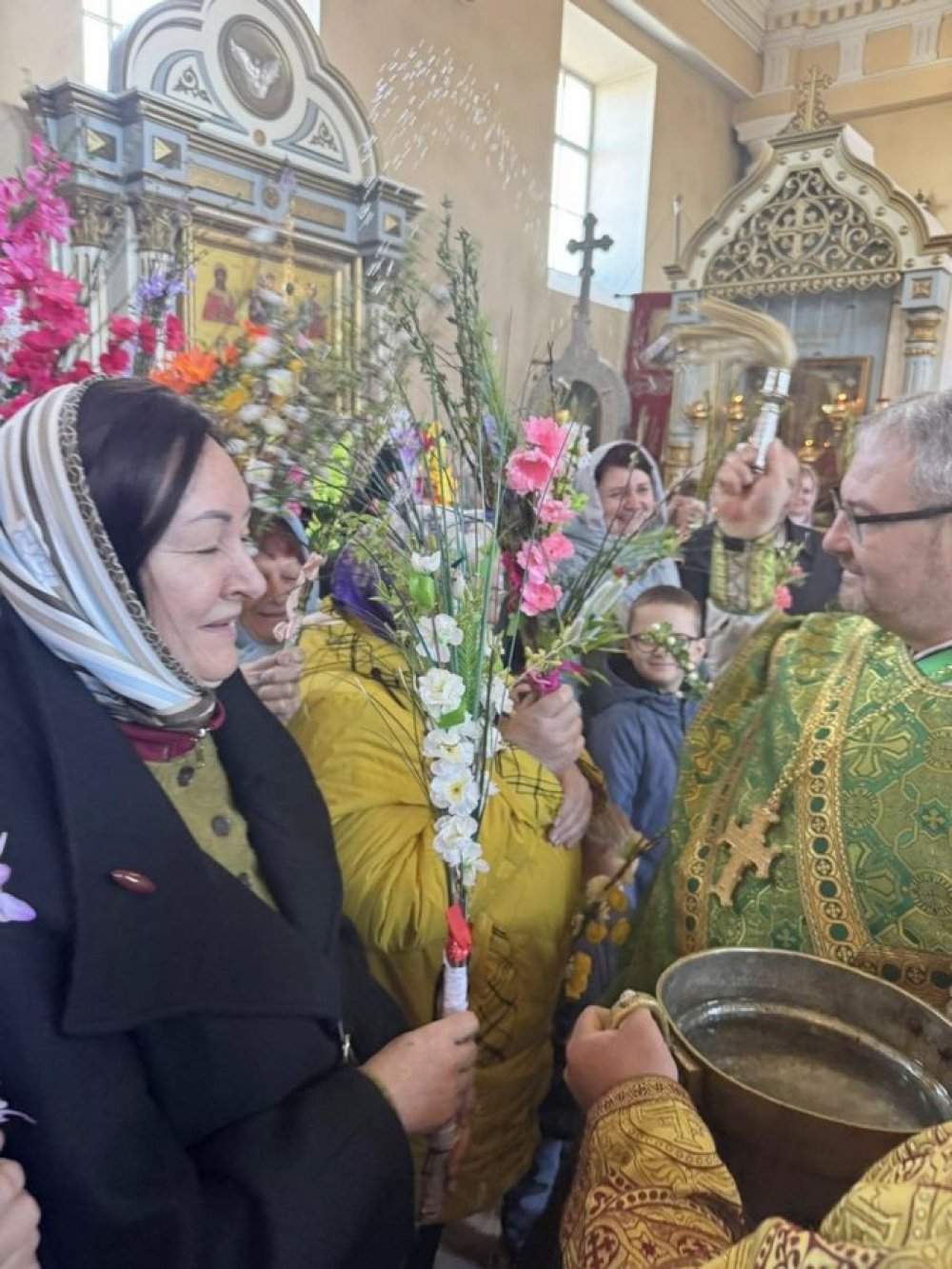Финалом богослужения стало освящение букетиков вербы в храме и на прицерковной территории, где священник окропил веточки святой водой.