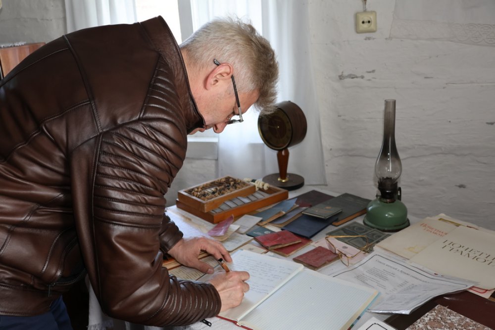Юрий Костоломов оставил памятную запись в книге отзывов, пожелав хранительнице успехов и поблагодарив за подвижнический труд.