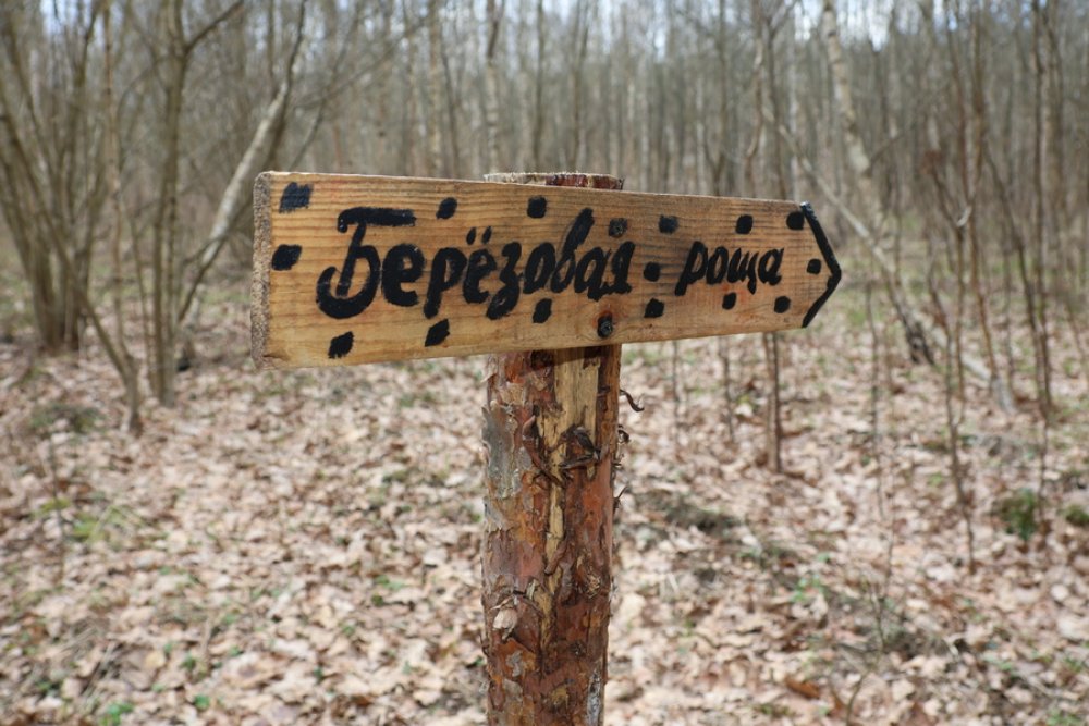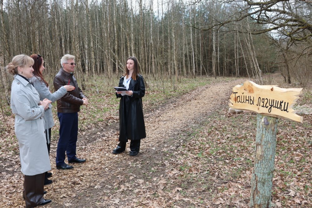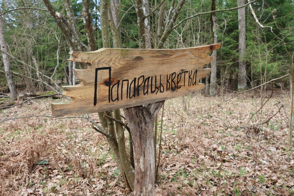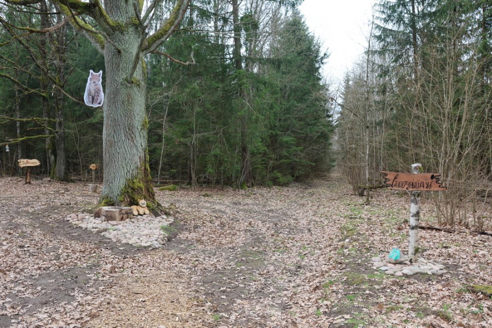 Маршрут продуман так, что скучать не придётся ни взрослым, ни детям: это не просто прогулка, а живой квест с остановками у птичьего домика, берёзовой и еловой рощ, загадочного пункта «Папараць-кветка» и даже домика лешего.