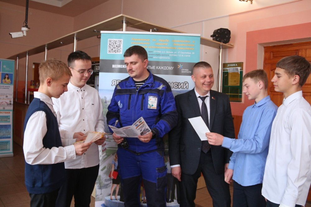 Организации района представили девушкам и юношам свои вакансии на лето. Представители РУП ЖКХ предложили поработать в качестве подсобных рабочих по благоустройству. Планируется организовать отряд из 20 ребят.