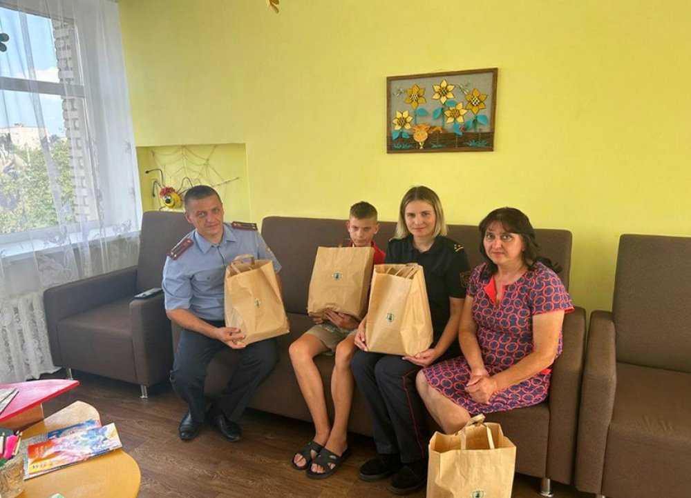 Всем детям гости вручили наборы канцелярских принадлежностей для школы и дошкольных учреждений образования, а также провели необходимые профилактические беседы перед началом учебного года.