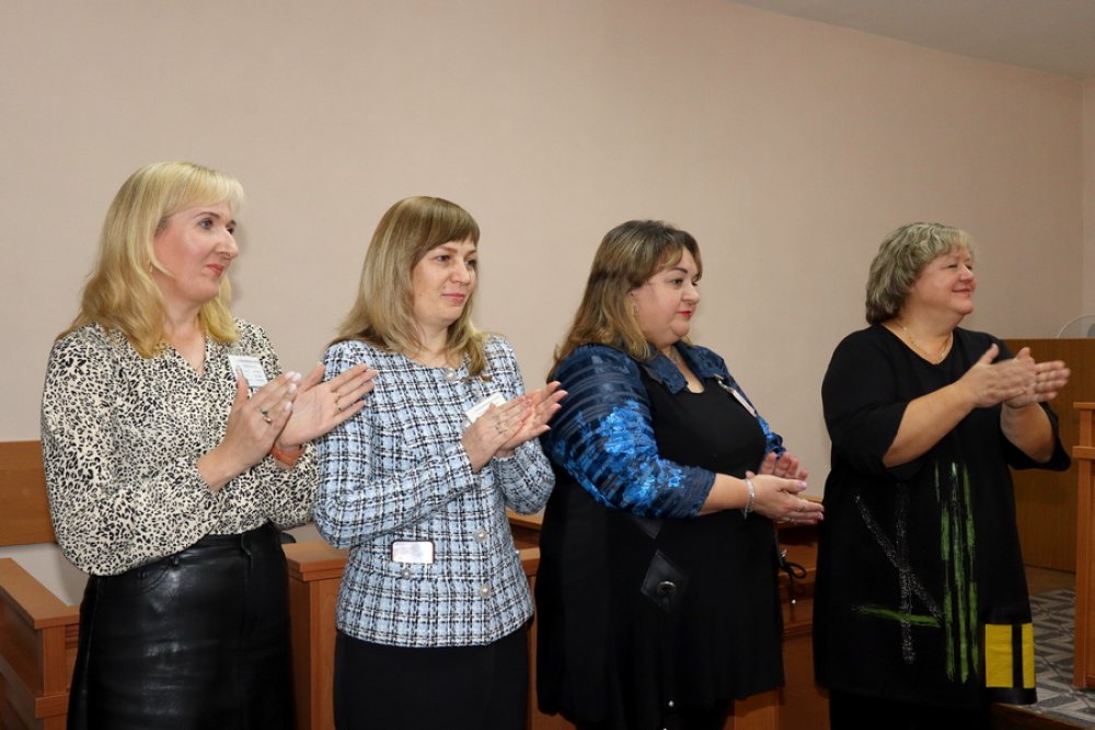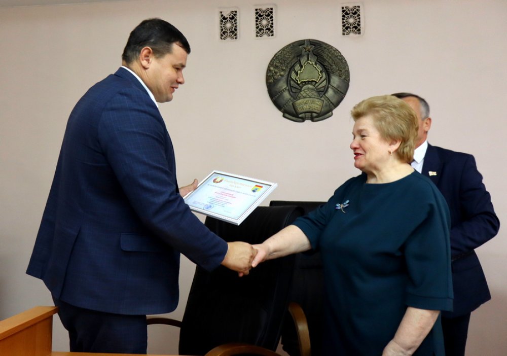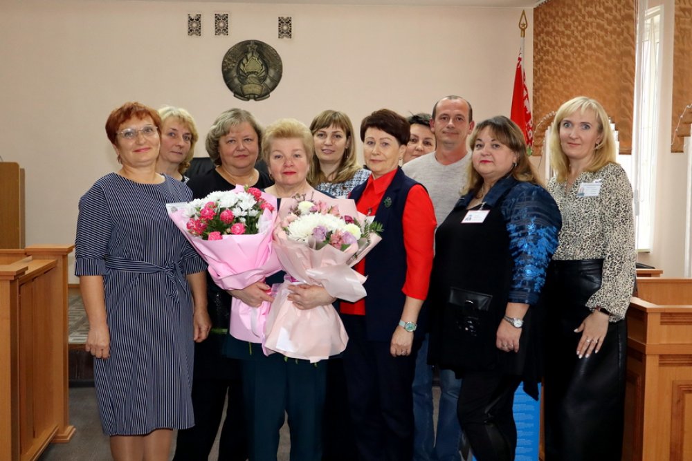 Под аплодисменты всех собравшихся за достижение высоких результатов в работе, образцовое исполнение служебных обязанностей и многолетний труд Наталие Степановой вручены нагрудный знак отличия Верховного Суда Республики Беларусь «За адданасць правасуддзю» и Благодарственное письмо районного Совета депутатов.