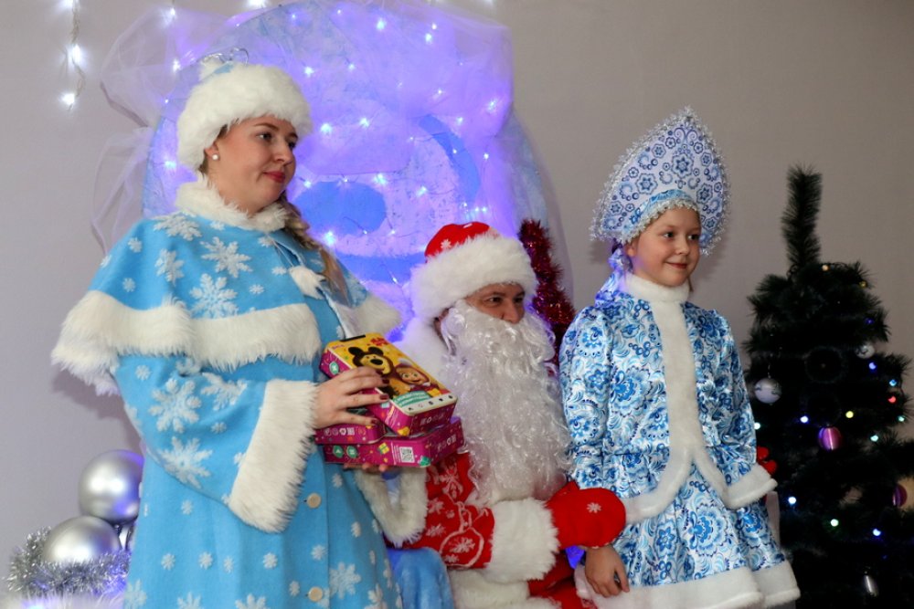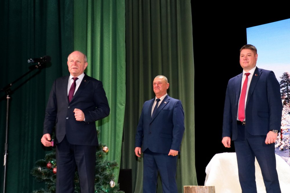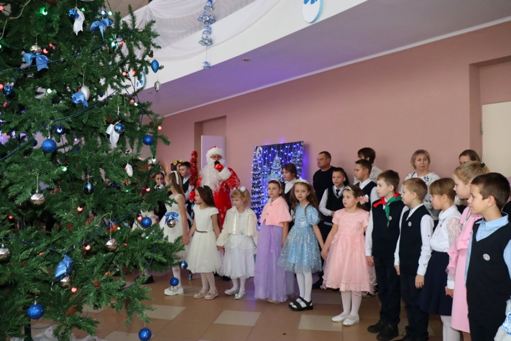 После этого белобородый волшебник, его внучка Снегурочка и председатель райкома профсоюза работников АПК Валерий Парфенчик вручили им сладкие подарки и все закружились в хороводе.