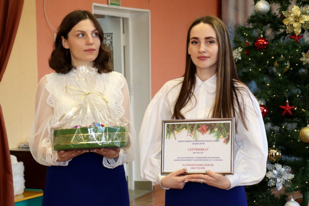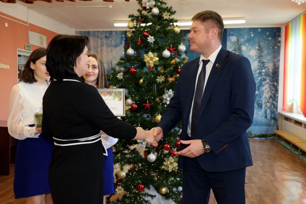 Денис Александрович вручил денежный сертификат и подарок заведующему ДЦРР №1 Ольге Мацкевич с пожеланиями новых достижений учреждению, а также его воспитанникам и коллективу.