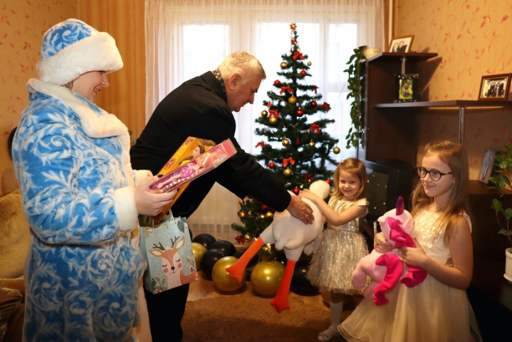Сегодня эстафету добра принял депутат Палаты представителей Национального собрания Республики Беларусь Валентин Семеняко. В роли волшебника вместе со Снегурочкой он поздравил с наступающим Новым годом еще две зельвенские семьи.