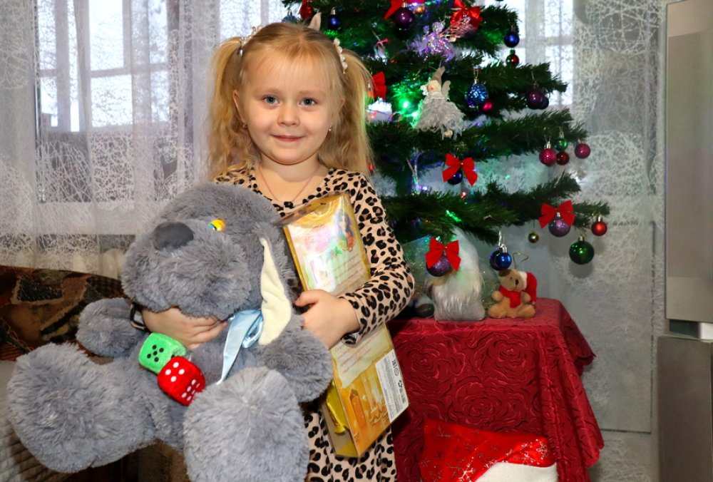 Так, поздравления и подарки принимала семья Сонец. Маленькая Настя в письме Деду Морозу просила под елочку мягкую игрушку и куклу. Исполнено! Не забыли и о тех, кто писать еще не умеет: младшей сестренке вручили сладости.