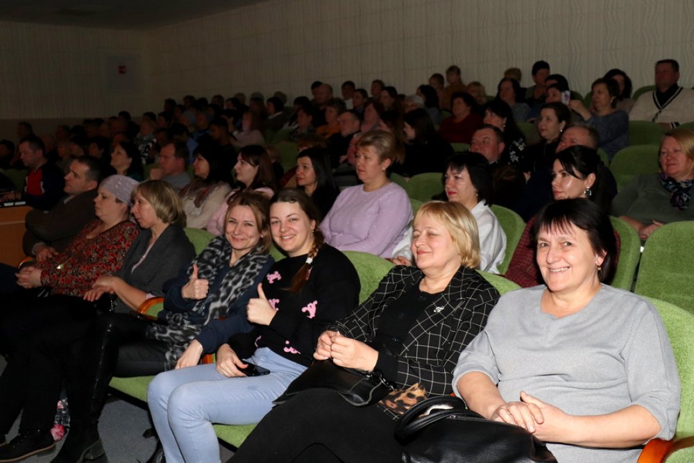 В зале собрались представители руководства района, общественных объединений, трудовых коллективов, ветераны труда и жители поселка.