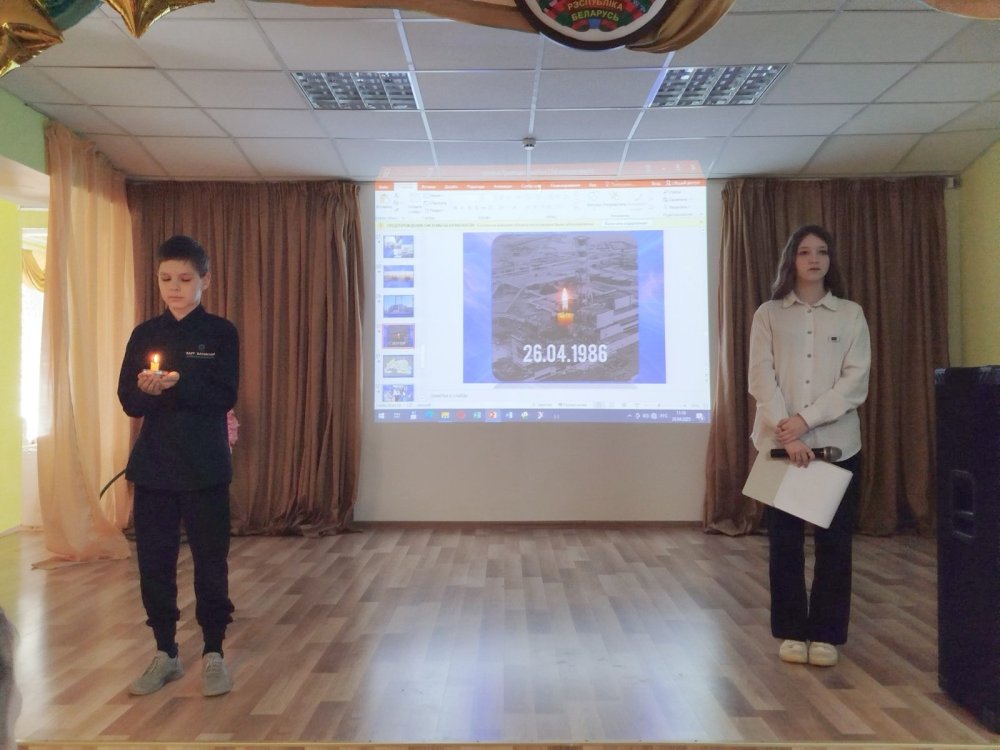 В ходе мероприятия учащиеся обсудили, как повлияла авария на нашу страну, как и почему изменилась жизнь белорусов на заражённых территориях. Из предложенной видеопрезентации школьники узнали о масштабах трагедии, различных заболеваниях, вызванных радиацией, последствиях экологической катастрофы, о мерах по борьбе с радиационным заражением. Большое впечатление на ребят произвело мужество людей, которые ликвидировали последствия аварии на станции. В память о них прошла минута молчания и была зажжена «Свеча памяти».