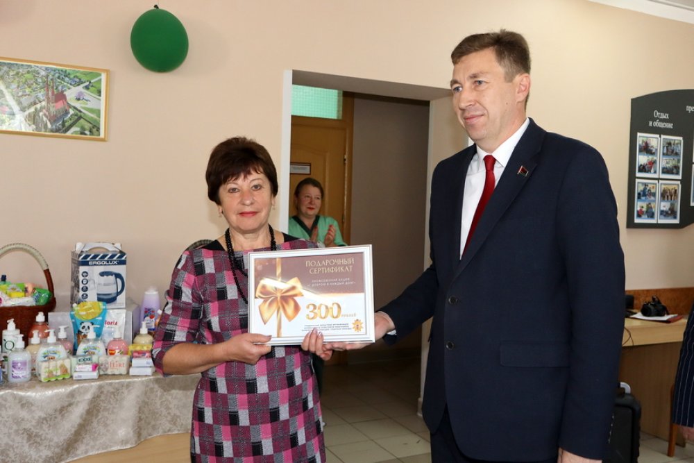 В рамках благотворительной акции «С добром и уважением» профсоюзный лидер побывал в отделении круглосуточного пребывания для граждан пожилого возраста и инвалидов в деревне Мадейки.