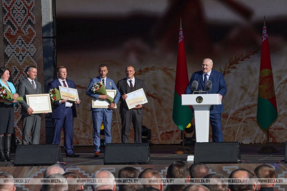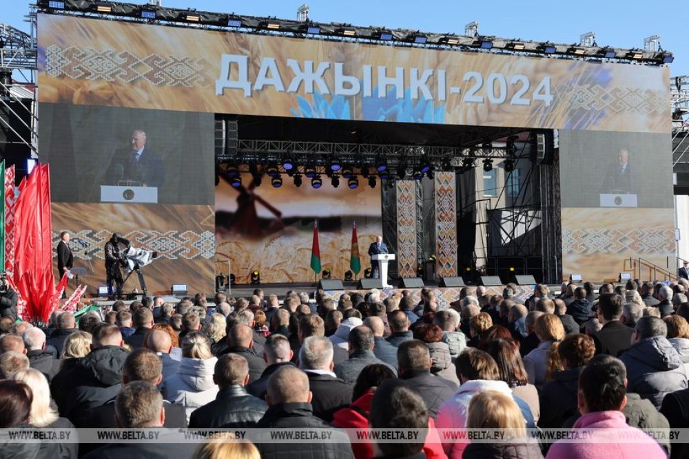 "От всего сердца благодарю всех, кто трудился на полях и животноводческих комплексах, в садах, на перерабатывающих агропромышленных предприятиях. Сегодня со сцены "Дажынак" я уверяю, что Беларусь, поставляющая продовольствие в более чем 100 стран мира, продолжит делать все, чтобы и у других народов были вкусные, качественные белорусские продукты и высокие урожаи. Мы это уже делаем", - заявил Александр Лукашенко.