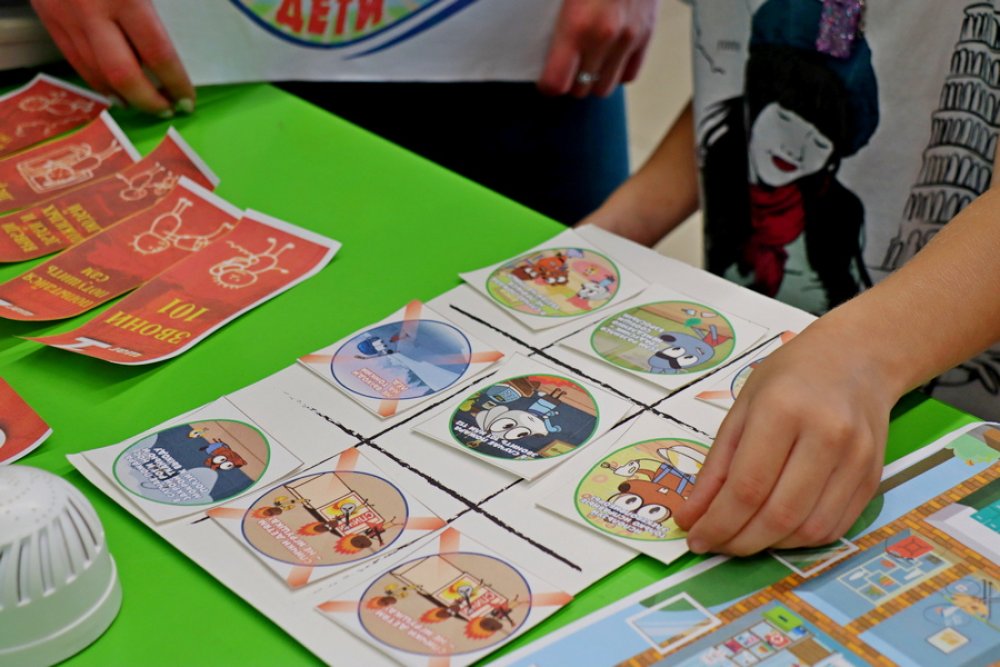 К примеру, ребята, участвующие в интерактивах, находили нарушения в квартире и решали, как их можно устранить. Из большого количества номеров, состоящих из трех цифр, искали правильные, а также вспомнили все средства пожаротушения.