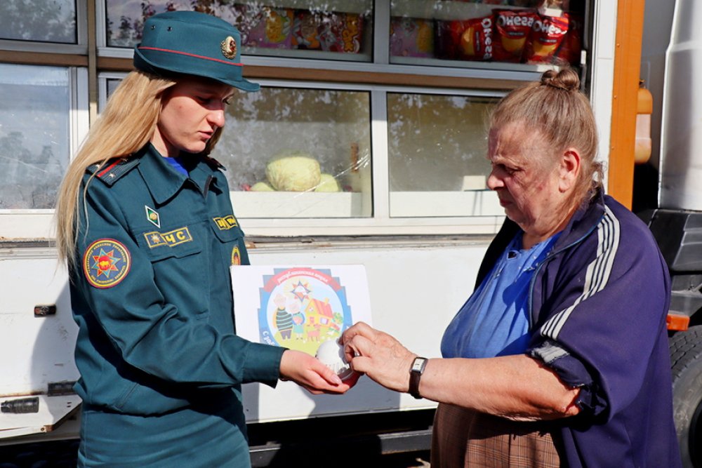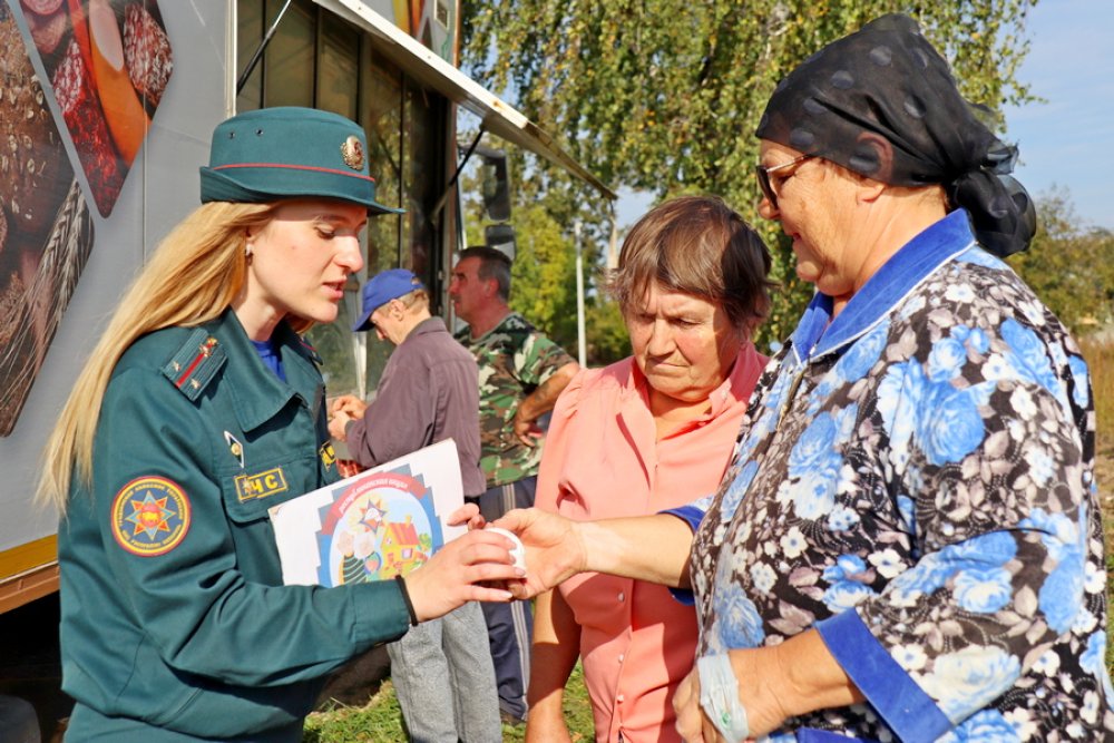 В рамках акции «С заботой о безопасности малой Родины!» инспектор ответила на все интересующие вопросы жителей и раздала наглядно-изобразительную продукцию МЧС.