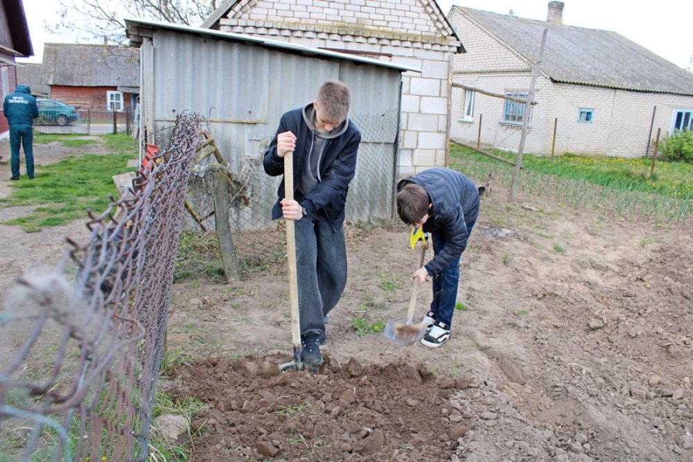 Члены Белорусской молодёжной общественной организации спасателей-пожарных знают подход и умеют решать задачи любой сложности. Поэтому им не составило труда собрать урожай яблок на придомовом участке, вскопать огород, подгрести траву и даже нарубить дрова.