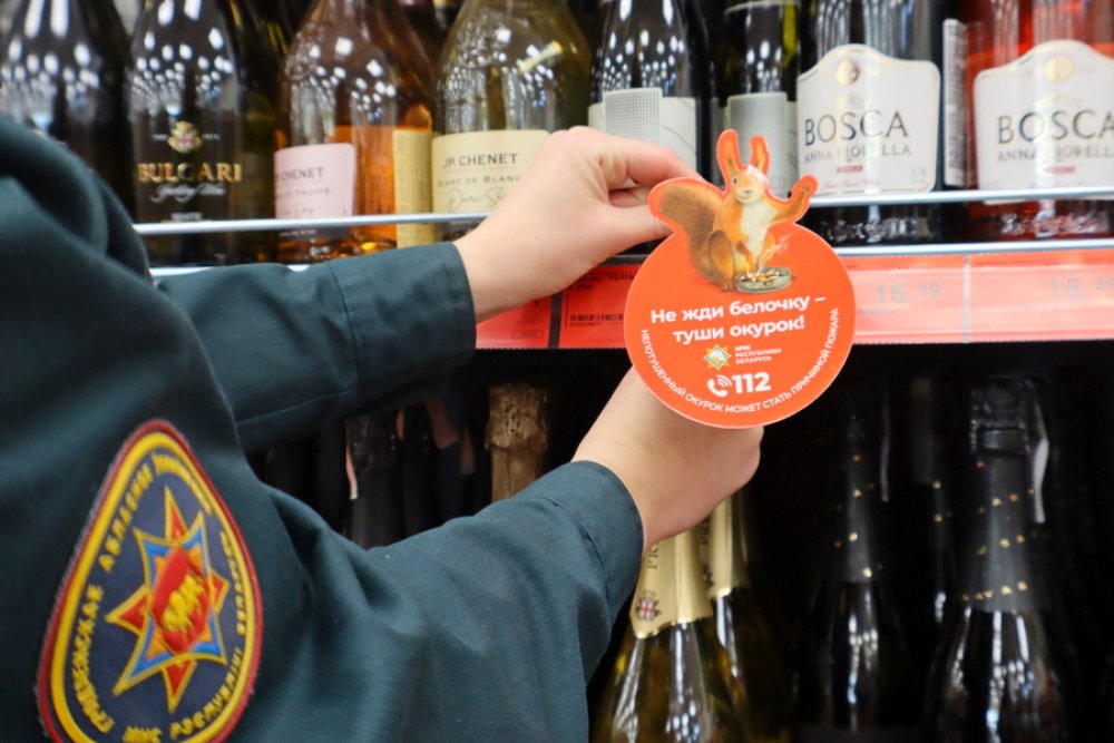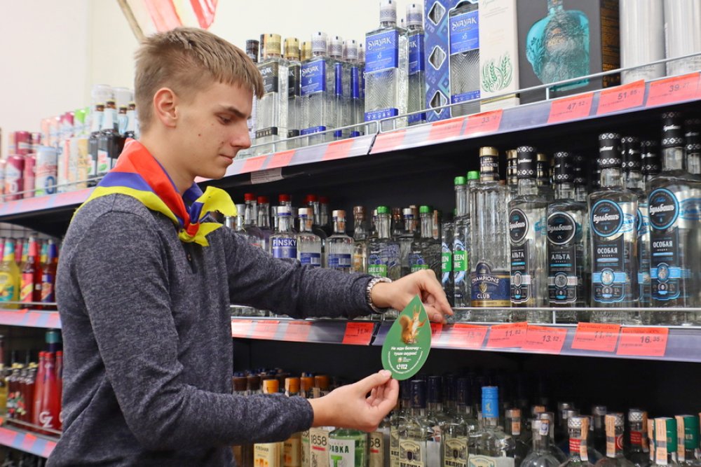 Первой точкой маршрута стал магазин «Копеечка», расположенный в центре городского посёлка. В первую очередь в торговом объекте на стеллажах с алкогольной продукцией ребята совместно с инспектором разместили профилактическую информацию об опасности курения в состоянии алкогольного опьянения.