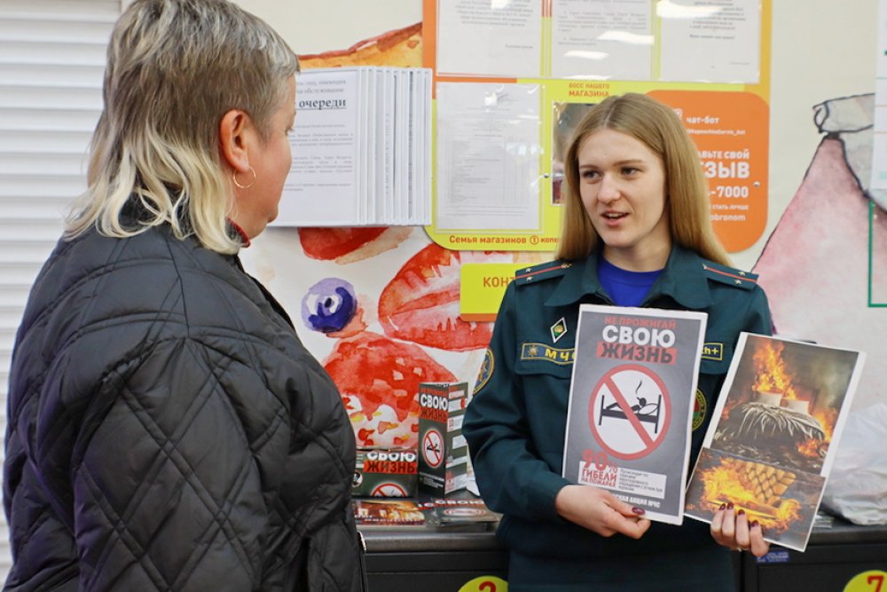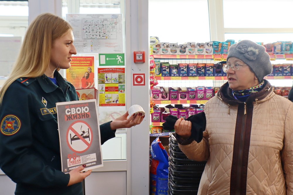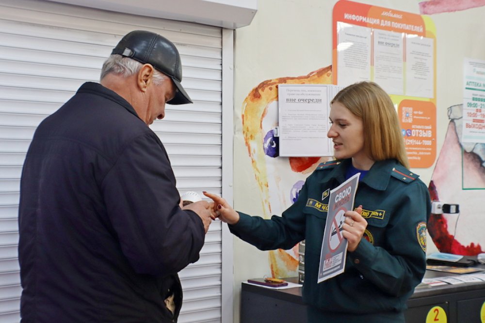 После уже начали общаться с покупателями: напомнили гражданам номера служб спасения, правила эвакуации и алгоритм вызова спасателей.