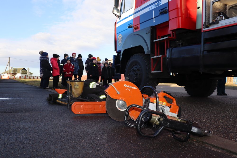 Выставка экипировки и различного оборудования спасательной службы для учеников Елковской школы.