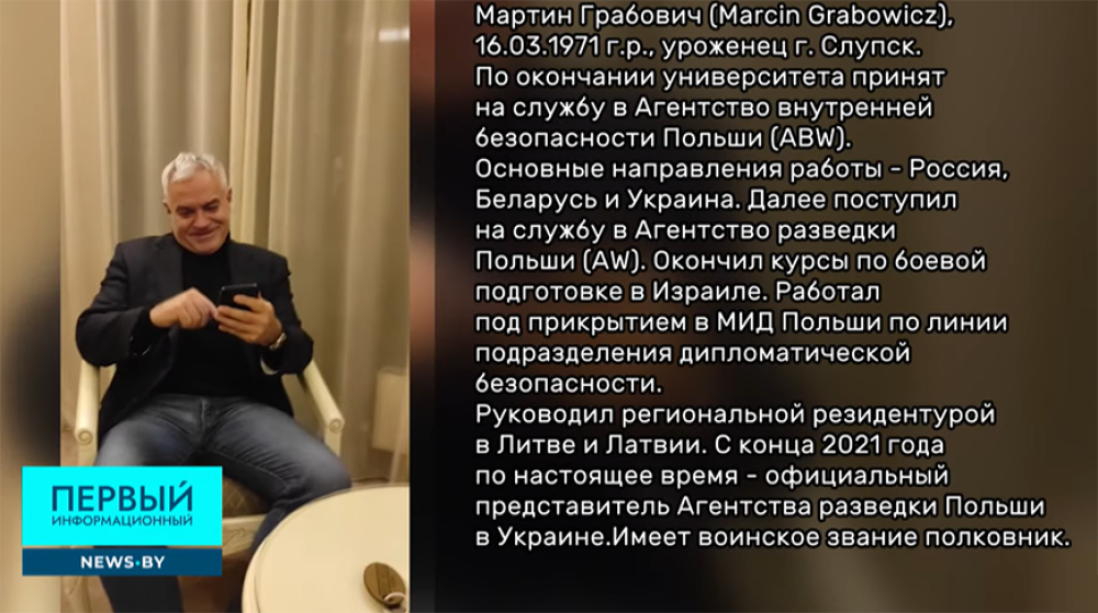 Как было заявлено в телеэфире, вербовать дипломата пытался Мартин Грабович - уроженец города Слупск. По окончании университета принят на службу в Агентство внутренней безопасности Польши. Основные направления работы - Россия, Беларусь и Украина. Далее поступил на службу в Агентство разведки Польши. Окончил курсы по боевой подготовке в Израиле. Работал под прикрытием в МИД Польши по линии подразделения дипломатической безопасности. Руководил региональной резидентурой в Литве и Латвии. С конца 2021 года по настоящее время - официальный представитель Агентства разведки Польши в Украине. Имеет воинское звание полковник.